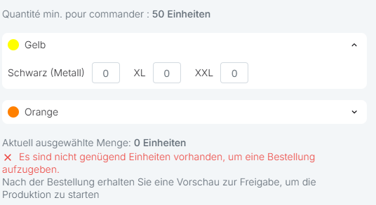 Wenn Sie eine Personalisierung hinzufügen, kann die Mindestbestellmenge variieren !